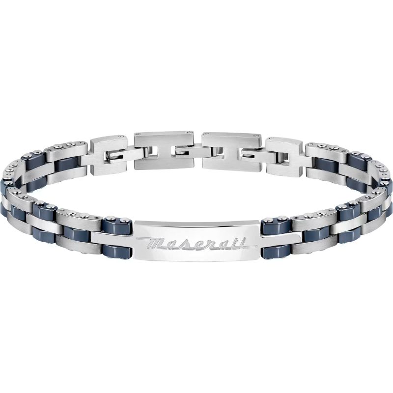 Brand: Maserati; Collection: Maserati Jewels; Article Code: JM220ASR01; Type of product: Bracelet; Gender: Man; Material: Hypoallergenic steel, Ceramic; Color: Silver, Blue; Size / Measure: 21,2 cm.